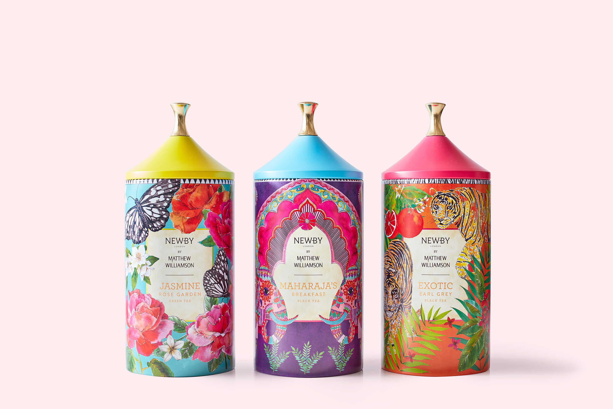 Британська чайна компанія преміум-класу Newby Teas об'єдналася з культовим британським дизайнером Метью Вільямсоном для випуску капсульної колекції унікальних купажів чаю в яскравих розписних баночках.